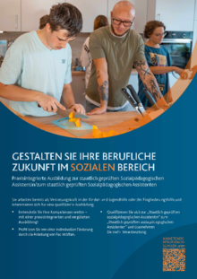 Die 3BF Sozialwesen ist eine praxisintegrierte Ausbildung zur Sozialpädagogischen Assistentin/zum Sozialpädagogischen Assistenten an einer dreijährigen Berufsfachschule. Auszubildende werden praxisnah ausgebildet und auf eine Tätigkeit in den entsprechenden Berufsfeldern zielgerichtet vorbereitet. Im Mittelpunkt der Ausbildung stehen Arbeitsfelder der Kinder- und Jugendhilfe (SGB VIII) und der Eingliederungshilfe (SGB IX). Zukünftige Einsatzorte sind insbesondere Kindertageseinrichtungen, Horte, stationäre und teilstationäre Hilfen zur Erziehung, Ganztagsschulen, Ganztagsbetreuung sowie im Rahmen der Eingliederungshilfe vielfältige Wohnformen, Teilhabe im Sozialraum, Tagesstrukturen sowie Freizeit- und Begegnungsstätten.