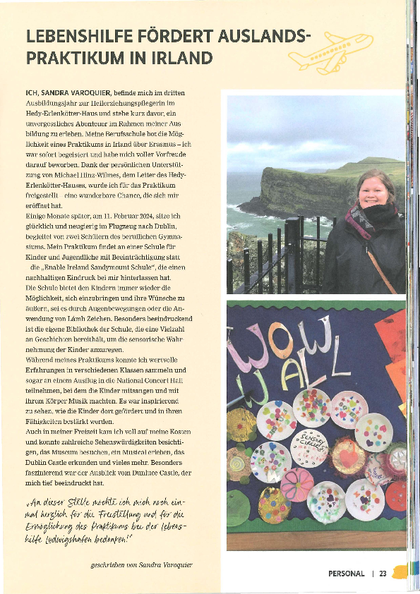 Wir fanden den Vortrag sehr interessant, aufschlussreich und gehen mit einer aufmerksameren Sichtweise an unsere Arbeit als HeilerziehungspflegerInnen.