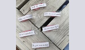 In der Ausstellung ging es dann weiter mit dem Glück. Es gibt dort einen großen Monitor mit Alterserkennung, der, wenn man davor steht das biologische Alter bestimmt. Wenn man lächelte, machte der Computer einen gleichmal 10 Jahre jünger ergo glücklicher. Auch die Stresskugel zeigt einem deutlich, dass es wichtig ist, sich hin und wieder eine Pause zu gönnen. Wie hatten auch die Gelegenheit, auf einer Wand unsere Ziele, die wir noch vor unserem Tod erreichen wollen, aufzuschreiben. Das macht einem bewusst, dass das Leben noch mehr zu bieten hat außer Arbeit, nämlich Familie, Freunde, Hobbys - also Dinge, die uns glücklich machen sollen. In jeder Ecke gab es Infos über das Glück und wie wir es nutzen können.