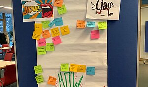 Am Tag der Präsentation war der Raum fertiggestellt – und das Ergebnis konnte sich sehen lassen. Lehrkräfte und Lernende aus den verschiedenen Bildungsgängen der BBS Anna Freud waren begeistert von der Arbeit und dem Engagement der Ausstellenden. Die verschiedenen Mit-Mach-Stationen und die vielen kreativen Ideen regten zu intensiven Gesprächen und einem lebhaften Austausch an. Ein toller Tag.