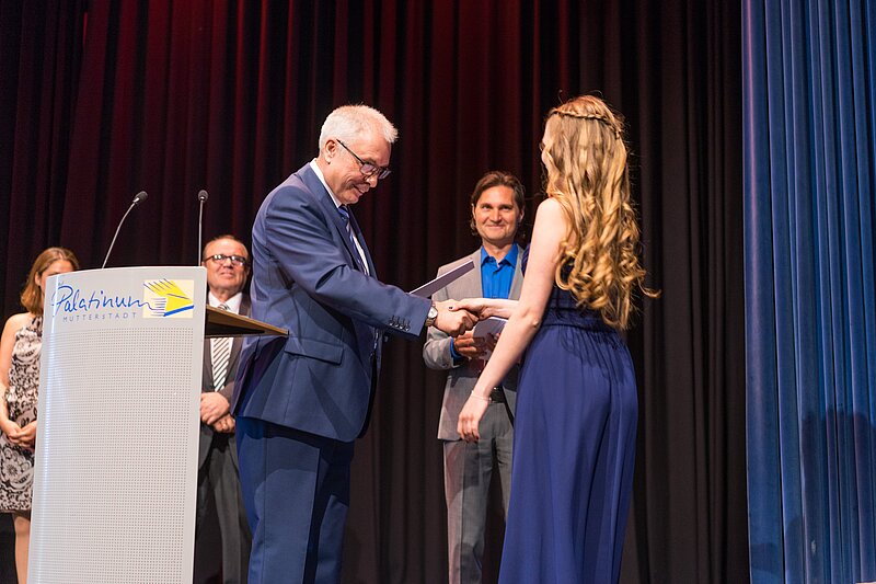 Zur diesjährigen Abiturfeier im Palatinum Mutterstadt wurden erstmals Abiturzeugnisse mit dem neuen Zusatznamen „Anna-Freud-Schule“ an den Abiturjahrgang 2016-17 ausgegeben. Nach dem Einmarsch der Abiturienten begrüßte Bürgermeister Dieter Schneider aus Mutterstadt und Fördervereinsmitglied der BBS in einem Eingangsgrußwort die Absolventen, die Eltern und die anwesenden Gäste bei der Abiturfeier. Nach der Rede des Schulleiters Detlef Krammes erfolgte die Zeugnisübergabe durch die Stammkurslehrer, den Abteilungsleiter und den Schulleiter. Auch der Ortsvorsteher von Ludwigshafen-Gartenstadt Klaus Schneider beglückwünschte jeden einzelnen Abiturienten bei der Zeugnisausgabe und übergab vor seinem Grußwort an die Anwesenden die Preise des Fördervereins an die Leistungskursbesten in den Fächern Pädagogik, Psychologie, Biologie, Gesundheit, Englisch und Deutsch sowie den Preis der Ministerin für soziales Engagement und einen naturwissenschaftlichen Preis. Außerdem wurde Leonie Hirsch als Jahrgangsbeste geehrt.