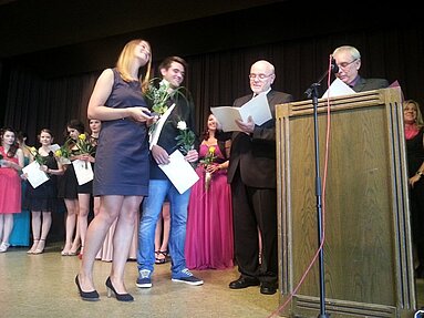 Nach der feierlichen Urkundenausgabe erfreuten sich alle an umfangreichen musikalischen und tänzerischen Einlagen der Abiturienten und auch der Lehrerschaft. Fleißige Helfer und Helferinnen aus der Jahrgangsstufe 12 und aus dem Lehrerkollegium halfen tatkräftig für das leibliche Wohlergehen an diesem Abend mit.