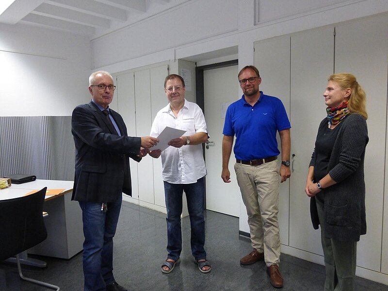 Am 13.08.2018 ehrte Oberstudiendirektor Detlef Krammes, Schulleiter der Anna-Freud-Schule Ludwigshafen, Herrn Oberstudienrat Heinz Siegfarth zu seinem 40-jährigen Dienstjubiläum. Der Schulleiter überreichte zu diesem Anlass dem Jubilar in Anwesenheit seiner beiden Stellvertreter, Studiendirektor Clemens Kaesler und Studiendirektorin Katrin Griem, die Anerkennungsurkunde des Landes Rheinland-Pfalz, die von der Ministerpräsidentin Malu Dreyer unterzeichnet wurde und in welcher sie als Regierungschefin des Landes gegenüber dem Jubilar ihren Dank für die treuen Dienste, die er für die Allgemeinheit in 40 Dienstjahren leistete, zum Ausdruck brachte. Die Schulleitung schloss sich diesen Wünschen der Landesregierung an und wünschte dem Jubilar in seinem nun beginnenden 41. Berufsjahr an der Anna-Freud-Schule weiterhin eine gute pädagogische Hand und vor allem eine gute persönliche Gesundheit.