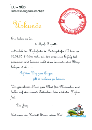 Im Unterschied dazu wollten und mussten die beiden Anna-Freud-Flößer keine Schiffspassiere retten, sondern wollten nur für die Anna-Freud-Schule den Spaß-Regatta-Wettbewerb ohne Aufgabe und Absinken beenden. Dies ist ihnen für die Anna-Freud-Schule erfolgreich am Hafenfest gelungen. Danke!!!