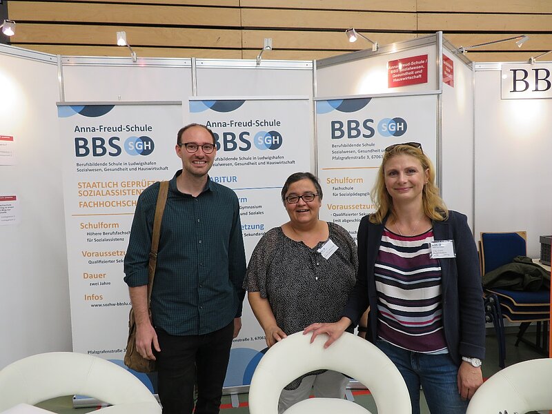 Herr Klein und zwei Schülerinnen der Anna-Freud-Schule