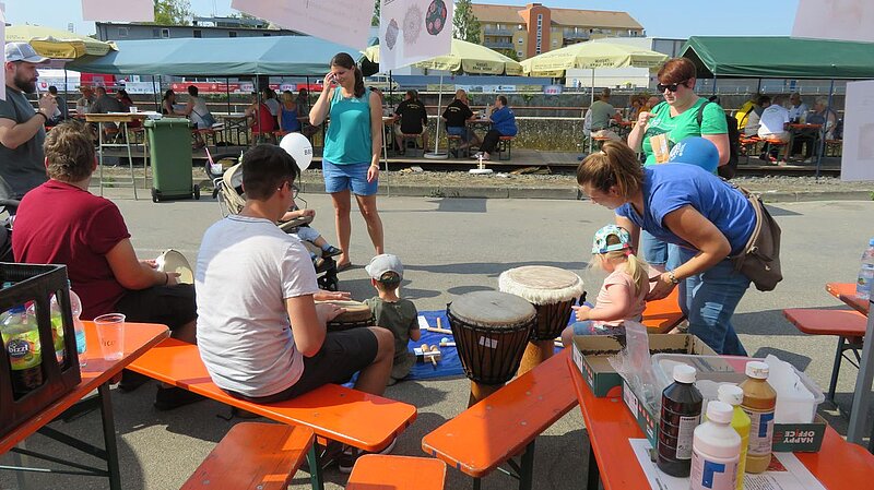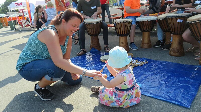 Wie bereits im Vorjahr nahm die Anna-Freud-Schule am 24. / 25.08.2019 beim Hafenfest an der Kammerschleuse mit einem Stand und an den Wettbewerben der Bootsregatta der Vereine, Einrichtungen, Banken und Firmen bzw. der abschließenden Spaßregatta teil. Zahlreiche Lehrkräfte mit Schülerinnen und Schülern aus den verschiedensten Schulformen der Anna-Freud-Schule boten Aktivitäten am Anna-Freud-Stand an, die von Jung und Alt gern genutzt wurden: Murmelbilder gestalten, Mandalas malen, Kinderschminken, eine Luftballonstation und gemeinsames Trommeln. Dieses konnten die Schülerinnen und Schüler bei einem vorher in der BBS SGH angebotenen Workshop erlernen.