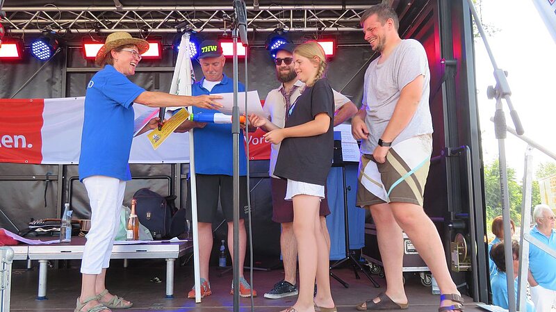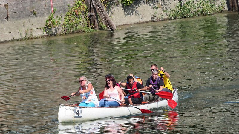 Bei den Wettbewerben der Bootsregatta ging in diesem Jahr neben dem Lehrerboot auch ein Inklusionsboot der Anna-Freud-Schule an den Start. Schüler und Schülerinnen des Bildungsgangs der Heilerziehungspflege ruderten gemeinsam mit Klienten aus ihren Einrichtungen und eroberten schnell die Herzen des Publikums, welches das Inklusionsboot lautstark ins Ziel klatschte.