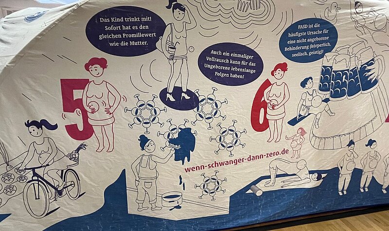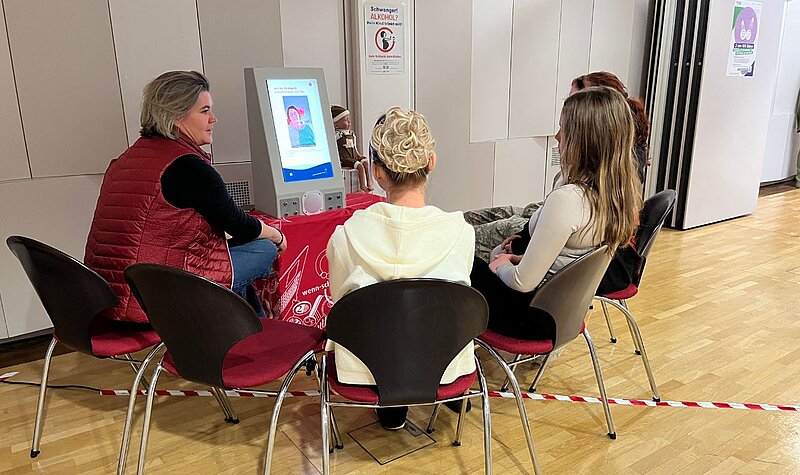 Ein weiterer wichtiger Bestandteil der Ausstellung war die Präventionsarbeit. Eine Suchtberaterin klärte die Jugendlichen über die Risiken von Alkoholkonsum auf und zeigte Möglichkeiten auf, wie junge Menschen verantwortungsbewusst handeln und zur Prävention beitragen können – insbesondere im Hinblick auf Alkoholkonsum während einer Schwangerschaft.